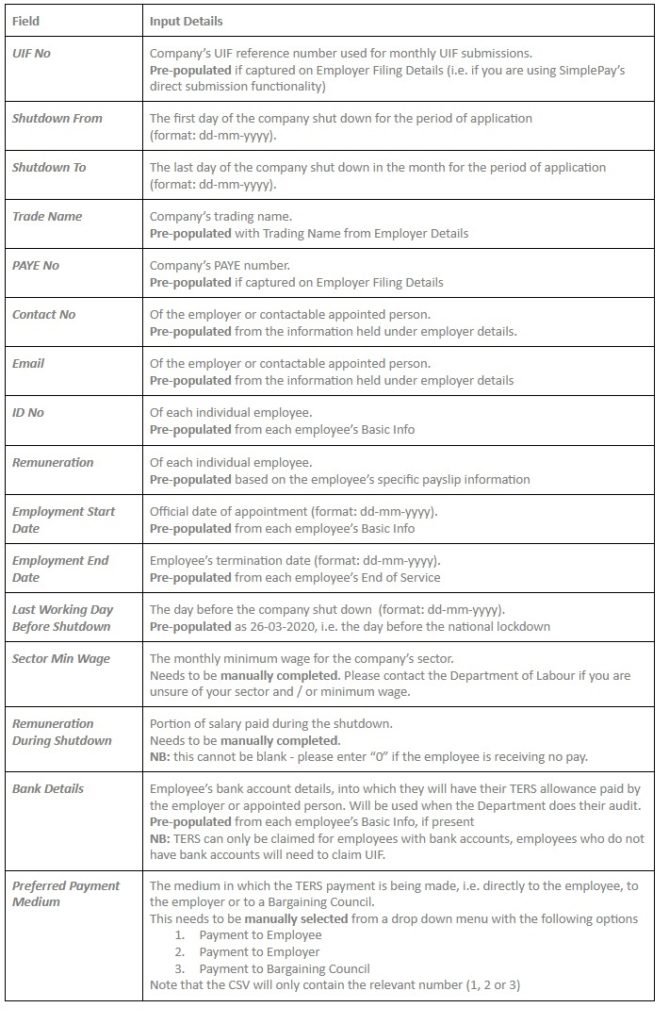 Note: Payments to employers was the recommended option for the “Preferred Payment Medium” field for April TERS applications. From May onwards, the Department has indicated that the option to pay employers, Bargaining Councils or Industry Associations is still available, but they have advised to select paying directly into employees’ accounts to fast track payments to employees.
